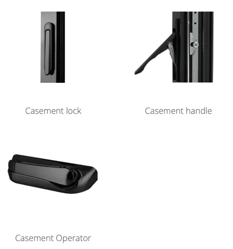 - Casements and Awnings feature a slim operator cover and handle engineered to deliver superior performance and strength with a patented two-directional fixing design