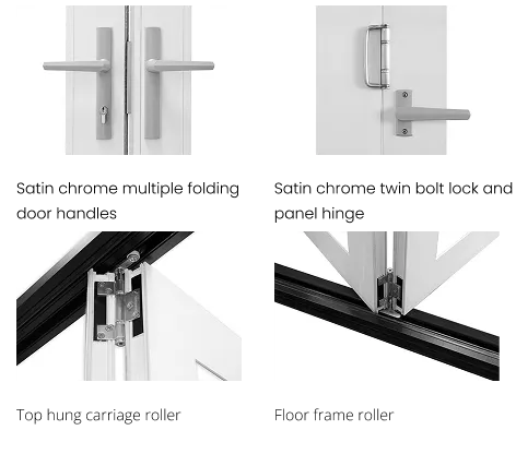 Multiple folding doors feature modern level compression locks and a choice of metal finishes.
